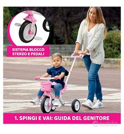 PEDALATA LIBERA: Rimuovendo il maniglione, il bambino può pedalare liberamente e divertirsi ad esplorare intorno a sé