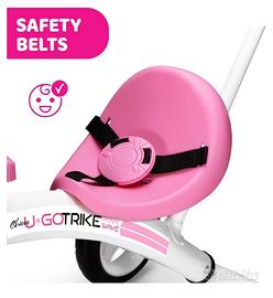 SPINGI E VAI: La cintura di sicurezza e il comodo maniglione estensibile permettono all'adulto di spingere il triciclo e guidare comodamente il bambino