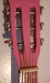 Chitarra Bontempi per bambini in legno colore rosa , 6 corde accordabili. misura lunghezza cm 76 x cm 27 x cm 7,5 altezza.