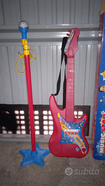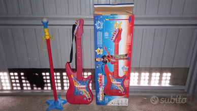Vendo divertentissima chitarra elettrica giocattolo Music Star Bontempi..con asta e microfono..dotata di comoda tracolla..suona come una chitarra vera..tenuta benissimo..con scatola originale..
