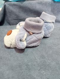 Morbide moppine o ciabattine per bambini a forma di cane. Taglia 21/22. - Colore azzurro e bianco. - Dettagli musetto e orecchie.