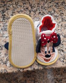 Pantofole da bambina n.ro 19 Modello Disney "Minnie". Colore bianco-rosse. Nuove mai indossate