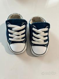 Vendi ciabattine simil scarpe da ginnastica Converse blu e bianche, da bambini/bambina taglia 18 (6-9 mesi).