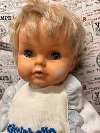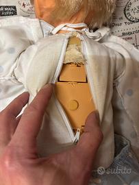 Come da foto vendo il seguente ciccio bello vintage,FUNZIONANTE e compreso di ciucco originale,nella foto del collo hanno messo una fascetta per tenere su il vestitino,i pantaloni hanno l’elastico che si e allargato mentre per il resto ha tutto meno che i calzini che purtroppo sono andati persi. Nella foto della faccia si puo notare delle macchie,penso dovuto a scolorimento. Accetto proposte e spedizione a vostro carico.