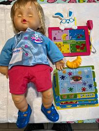 Bambola interattiva che ripercorre i tipici momenti di una giornata a scuola e permette alla bimba di immedesimarsi nel ruolo della maestra