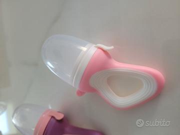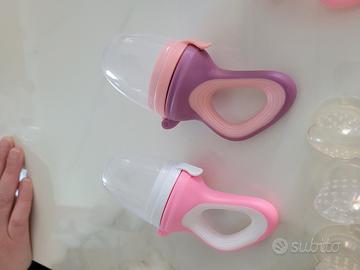 Simpatici Ciuccetti per introdurre il piccolo al sapore della frutta. Vengono fornite 3 basi con 8 tettarelle. Viene utilizzato anche per mordere nella fase della pre dentizione.