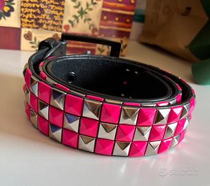 Cintura rosa/argenti con borchie a scacchi alternate rosa fluo e argento.