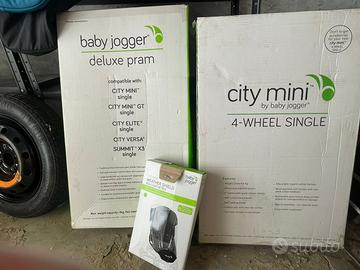 Vendo city mini by Baby jogger 4 ruote ben tenuto: facile e pratico da utilizzare, si chiude con una mano! Carrozzina usata pochissimo, sacco per l’inverno da attaccare al passeggino, copripioggia, tutto originale
