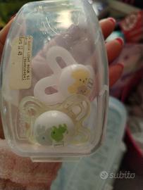 2 ciucci nuovi della Mam 2-6 mesi, più contenitore della Chicco per sterilizzarli.