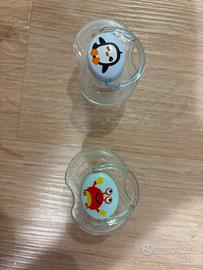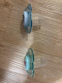 4 ciucci per neonato, nuovi, mai usati. 2 marca mam con portaciuccio sterilizzatore. 2 con portaciuccio singolo.