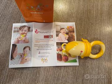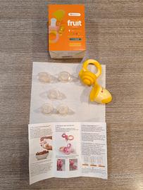 Ciuccio da frutta, ideale per svezzamento, dentizione e massaggiagengive completo di 5 tettarelle in silicone 2 x S (dai 4 mesi) , 1 x M, 2 x L (dai 10 ai 24 mesi) mai usate per adattarsi alle diverse età del bambino o del neonato. Certificazioni e ispezioni (TIC), senza bisfenolo A (BPA), senza lattice, senza piombo e ftalati. Progettato per essere facile da smontare e lavare/pulire.