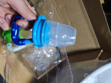 vendo a 10€ 2 ciucci porta frutta con 3 testine extra + un massaggia gengiva nuovi ancora in scatola