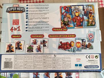 Clementoni - 18070 - Edukit 4 in 1 - Marvel Superhero - set di giochi (memo, domino, cubi, puzzle 30 pezzi) - gioco educativo 3 anni, gioco memory, puzzle bambini - Made in Italy