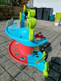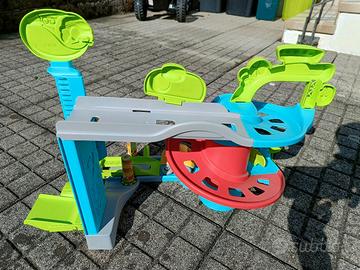 Un garage ricco di attività meccaniche per far scivolare la macchinina lungo il percorso, risalire, riscendere e non smettere mai di divertirsi la macchinina inclusa nel gioco lungo la discesa si ribalta facendo delle divertentissime capriole, stimolando la curiosità del bambino. Con un sistema di risalita manuale è possibile riportare la macchinina all’inizio del percorso, come in un vero garage lungo il percorso è possibile azionare dei passaggi a livello, fermarsi a fare rifornimento e passare attraverso i rulli dell’autolavaggio. Le attività meccaniche sono pensate per sviluppare la manualità e la percezione tattile dei più piccoli. Un garage playset ideale per i bambini dai 18 mesi in su. Il prodotto è 100% made in italy, realizzato al 100% con plastica riciclata e cartone riciclato e riciclabile.