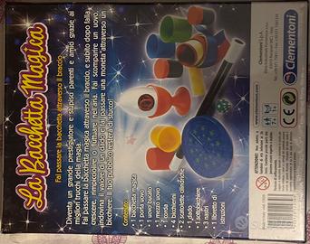 set di magia "La Bacchetta Magica" della Clementoni, ideale per bambini dai 7 anni in su. Il kit è perfetto per stimolare la manualità e la fiducia in se stessi dei più piccoli. • Contenuto: Include la bacchetta magica e vari accessori (dadi, coppe, ecc.) per realizzare oltre 20 trucchi spettacolari. • Condizioni: Nuovo, ancora sigillato • Punti di forza: Facile da imparare grazie alle istruzioni chiare, marchio leader nel settore educativo.