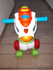 Cavallino a dondolo che è anche cavalcabile più un centro attività sulla criniera imparando ai bambini lettere cerai,nomi degli animali anche in inglese. Grazie a un sensore su muso interagisce con i bambini .