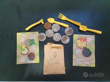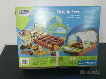 CONTENUTO: base della serra, porte della serra, archi di sostegno, copertura trasparente, listelli laterali, dischetti di torba, bustine di semi biologici, attrezzi da giardino, porta semi, vasetti biodegradabili, manuale illustrato
