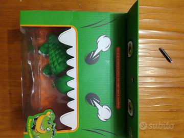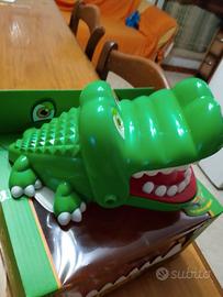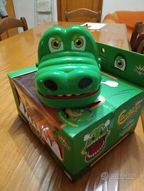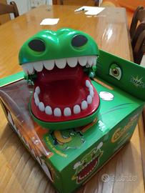 coccodrillo giocattolo in cui si apre la bocca e si schiacciano i denti finché non prendi il dente sbagliato che non si sa quale è e ti morderà ma non fa male