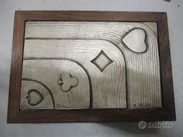 Vendo elegante cofanetto con carte da gioco e fiches originale anni 70. Realizzato in palissandro co coperchio in argento cesellato dall'artista Di Paolo. NUOVO, per informazioni telefonare