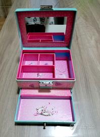 Cofanetto Portagioie per bambini in ottime condizioni, con tantissimi scomparti per poter mettere anelli, braccialetti, collanine e tutto quello che vuoi custodire con cura.