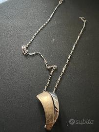 Collana in argento 935 del marchio Fraboso di Vicenza con ciondolo marcato e parzialmente in color oro. lunghezza massima ciondolo cm 3. Marchio 925 sia sul ciondolo che sulla catena, 6 gr di argento