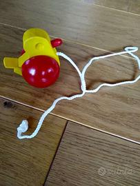 Offri una collezione di giocattoli di legno; un totale di 13 pezzi, alcuni nuovi o praticamente nuovi, altri usati. Tutte le parti funzionano; Solo un anello del treno è andato perso.