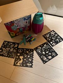 color spray crayola, usato pochissimo. contiene ancora tutti gli elementi che vengono forniti quando viene venduto, comprese le istruzioni