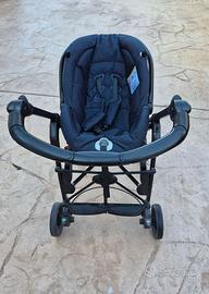 Telaio leggerissimo, maniglione regolabile, comodissima seduta reversibile, facile chiusura.