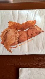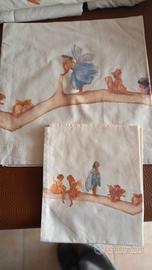 Vendo completo lenzuola navetta bimbo/a Anne Geddes composto da lenzuolo, federa coscino e trapuntina.