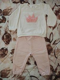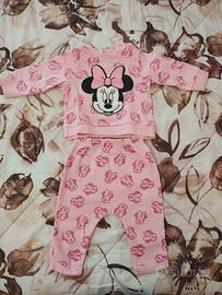 Set composto da 6 completi neonata, marche Idexe, Prenatal, Blukids. Taglie dalla 68 (completino Minnie) alla 74. Tessuto garzato, tranne completino bianco e rosa con corona ( felpato 100 % cotone).