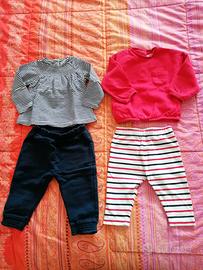 Vendo due completi da neonata, pantalone e maglioncino, marca Fagottino, taglia 6-9 mesi, cm 68.