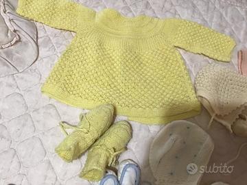Completini neonato fatti a mano in lana, cuffie tre, scarpine e vari. blocco unico