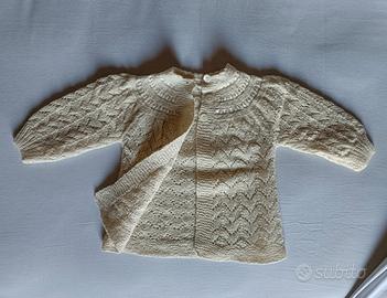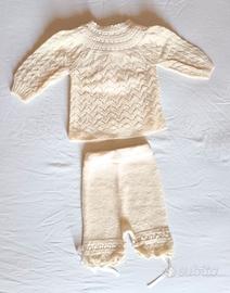 Due completi con maglia e pantalone (uno azzurro e panna, l'altro tutto panna) + 1 maglia rosa, tutti in misto lana, realizzati a mano.