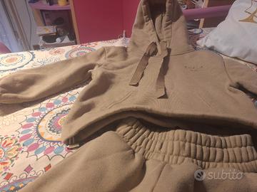 Felpa in tessuto felpato con cappuccio e tasca centrale e pantalone di tuta.