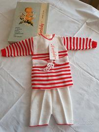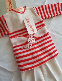 Grazioso completino bimbo/a in cotone rosso e bianco. Nuovo