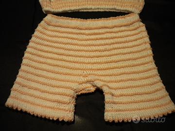 Completino corpetto + calzoncini fatti a mano in cotone ai ferri.