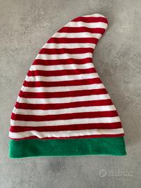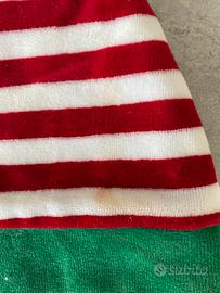 Completo da elfo per il Natale composto da tre pezzi. Il cappello presenta una macchietta, come si vede in foto.
