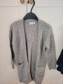 1 Vestitino nuovo blu 2 calze di lana leggera nuove 1 zainetto con orecchie 1 cardigan grigio lungo
