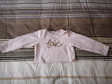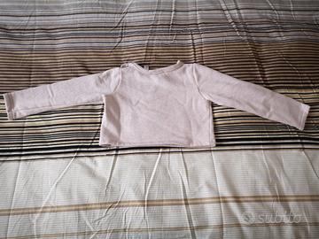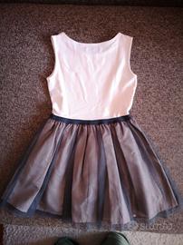 INDOSSATO MASSIMO 2 VOLTE, tenuto bene. Abito rosa con sottoveste tulle grigio e sottoveste iridescente rosa con fili metallizzati, ed ulteriore sottoveste grigio scuro; elastico in vita. Giacchino/felpa, interno felpato, chiusura con 2 bottoncini lato collo, scritta con paillette, colore rosa, righe grige e fili metallizzati. Tutto taglia 6 anni.