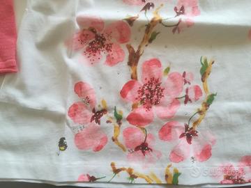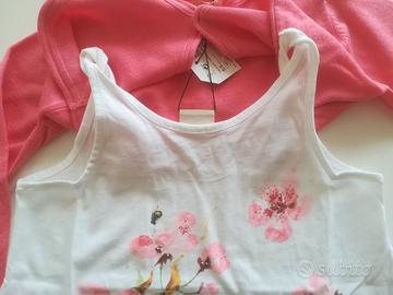Coprispalle color rosa intenso, canottiera bianca con fiori con strass, in cotone, taglia 5-6 anni. marca Zara. Nuovo mai usato, con cartellino
