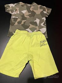 Completo OVS per bambini 4/5 anni (110cm), composto da maglia militare abbinata a pantaloncino giallo fluo.