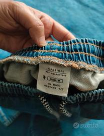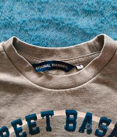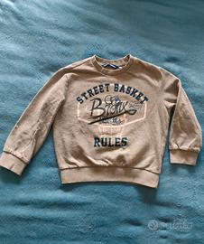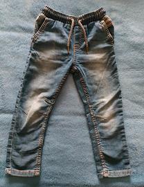 Completo composto da felpa grigia della Original Marines tg. 4 anni, 50% cotone e 50% poliestere, più jeans blu di Calliope tg. 4/5 anni con elastico in vita e due tasche davanti e due dietro. Usati ma in ottimo stato.