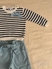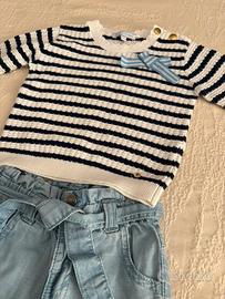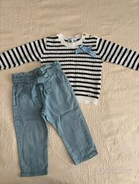 Completo bimba jeans benetton piu maglia original marines come nuovi taglia 12/18 mesi
