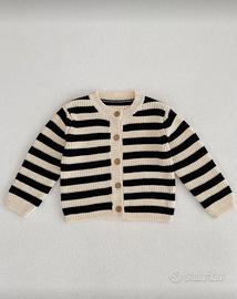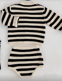 Due pezzi 18/24 mesi set maglione cardigan e pantaloni a coulotte, outfit allentato a collo tondo a righe per primavera e autunno vendo per errore taglia. Completamente nuovo