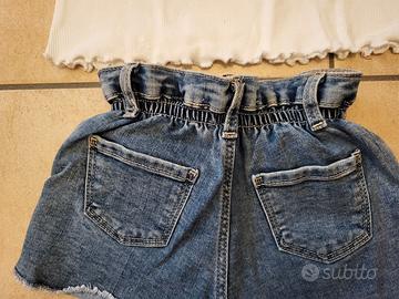 Canotta a costine con colletto avanti/dietro simil pizzo macrame' e short in jeans sfrangiato Marca zara