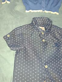 Completo di camicia e cardigan per bimbo 100% cotone pari al nuovo (usati un'unica volta per un matrimonio), taglia 6 mesi (vestibilità ampia).
