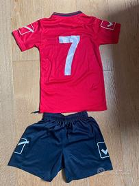 Completo calcio Givova, unisex, taglia 2 XS (6-8 anni). Composto da maglietta, pantaloncini e calzettoni. Maglia e pantaloncini usati 2 volte, calzettoni mai usati.