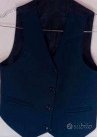 Completo bambino da cerimonia, con giacca pantaloni , gilet e camicia foderato taglia 10 anni, colore blu camicia bianca materiale poliestere e viscosa