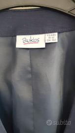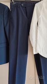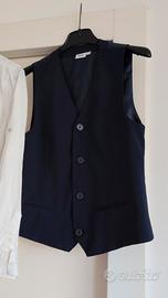 completo per cerimonia da bambino composto da: una giacca marca h&m taglia 11-12 anni colore blu scuro, una camicia marca marca blukids taglia 11/12 anni con colletto alla coreana e manica che si possono arricciare, un pantalone blu scuro marca blukids taglia 11/12 anni con bottone per stringere in vita, un gilet colore blu scuro taglia 11/12 anni bliekids.