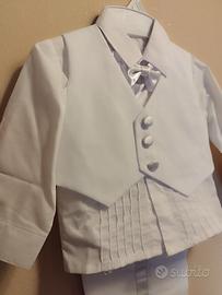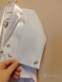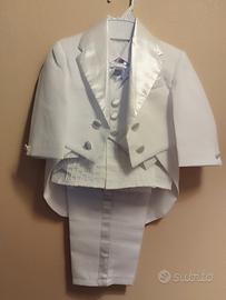 completo frac bianco da bambino tg 6 mesi completo di giacca a coda di rondine, gilet, camicia plissettata, papillon e pantaloni, ideale per battesimi o matrimoni. Prezzo un po' trattabile